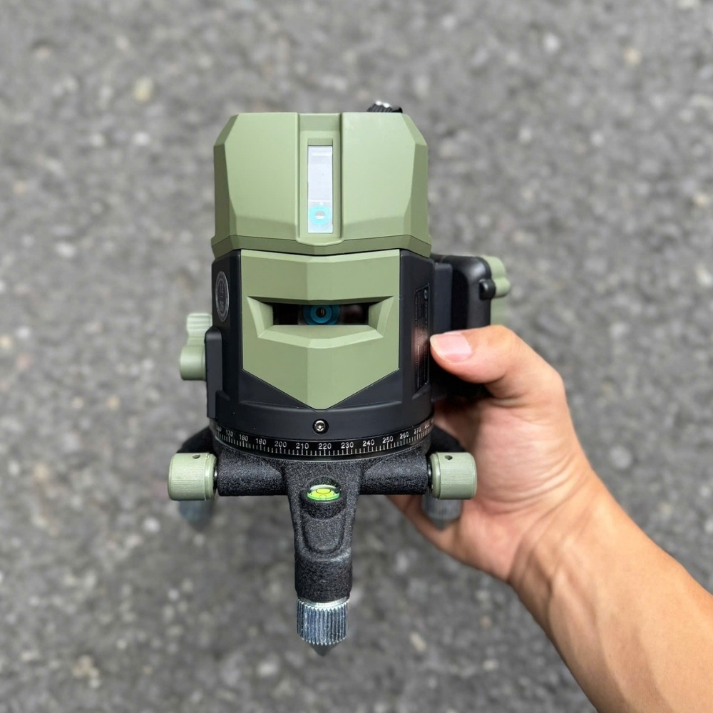 - Độ chính xác cơ khí: Chiều rộng tia đạt 2mm tại 5m, đảm bảo độ mảnh cần thiết để lấy dấu thi công chính xác, không bị nhòe tia hay tán xạ mạnh khi làm việc ngoài trời.