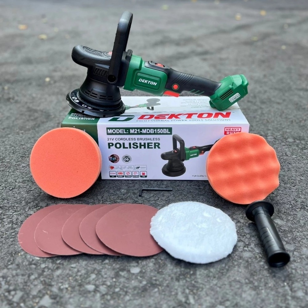 - Cơ chế đánh bóng lệch tâm (Dual Action): Khi vận hành, đế máy vừa quay tròn vừa rung lệch tâm. Cơ chế này giúp tản nhiệt bề mặt cực tốt, đảm bảo an toàn cho lớp sơn bóng (clear coat) của xe hơi, ngay cả với người dùng không chuyên.