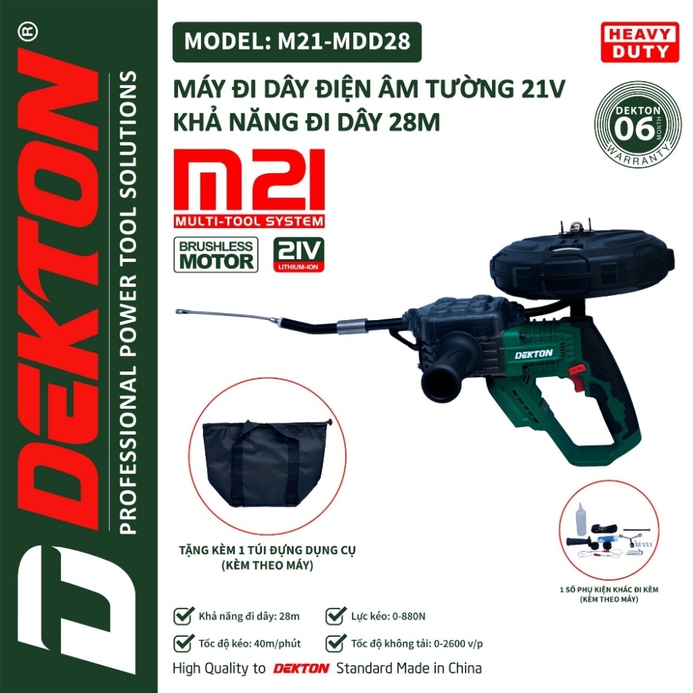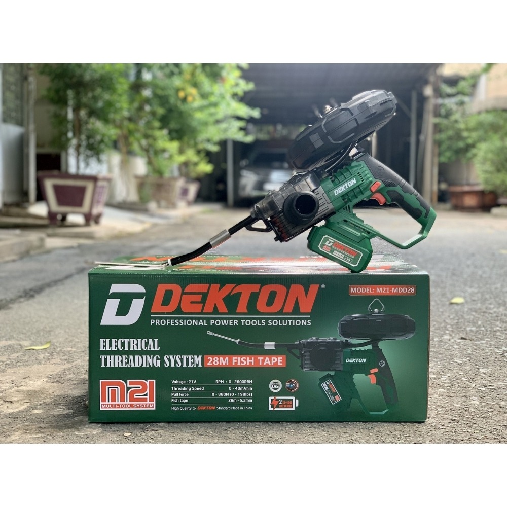 - Khả năng thi công (28M): Với dây mồi chuyên dụng đi kèm có độ đàn hồi và chịu lực cao, máy có thể xuyên qua nhiều khúc cua 90 độ trong hệ thống điện âm tường tiêu chuẩn với chiều dài tối đa 28 mét.