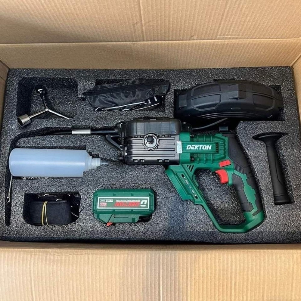 - Motor Brushless & Hệ thống truyền động: Việc trang bị động cơ không chổi than giúp máy duy trì momen xoắn ổn định ngay cả khi dây mồi gặp vật cản hoặc ma sát lớn trong ống. Motor này cũng giúp kéo dài tuổi thọ pin đáng kể khi thực hiện các ca làm việc liên tục tại công trình.