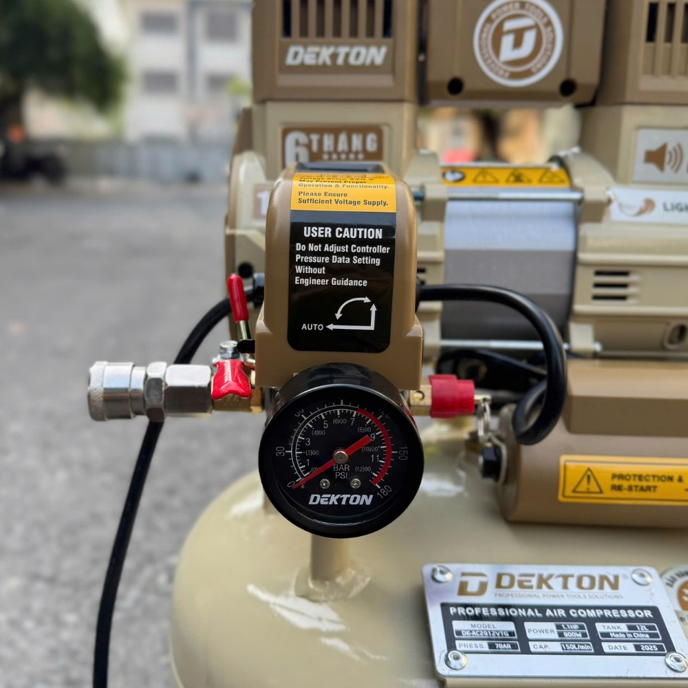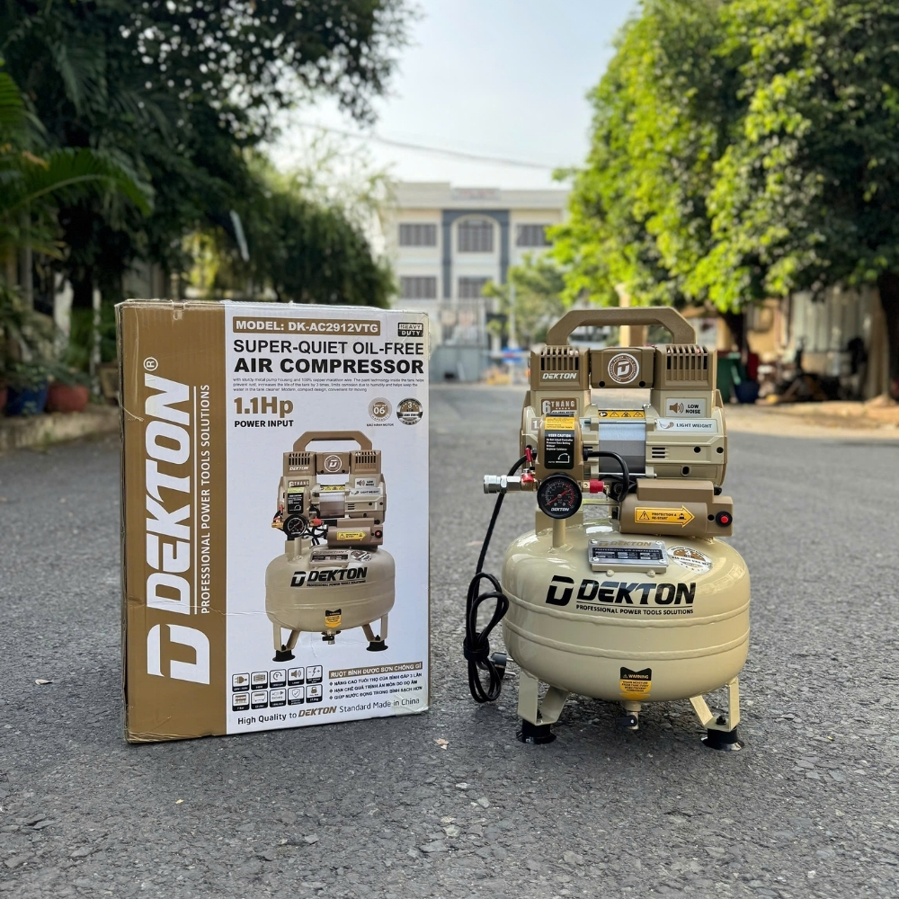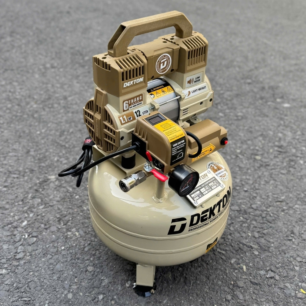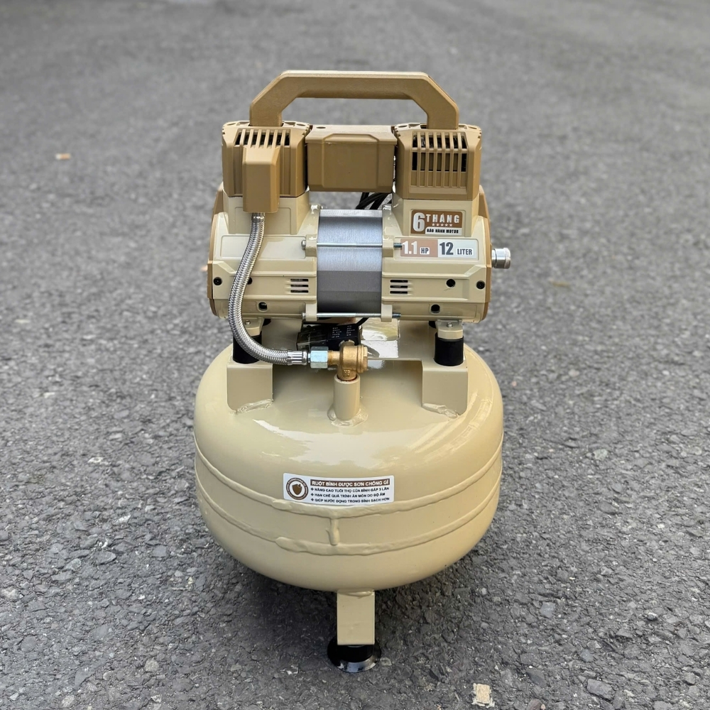 - Dung tích 12L tối ưu: Với thể tích 12L, máy cung cấp lượng hơi dự trữ dồi dào hơn các dòng 6L hay 8L, giúp công việc phun sơn hoặc bắn đinh diễn ra liên tục, ít bị ngắt quãng để chờ nạp hơi.