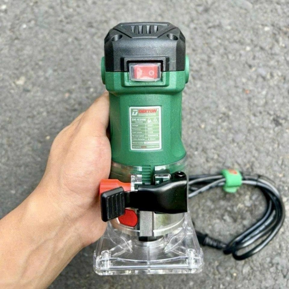 - Công suất 710W: Đây là mức công suất mạnh mẽ đối với một chiếc máy soi cạnh cầm tay. Động cơ 710W giúp máy duy trì tốc độ ổn định ngay cả khi phay trên các loại gỗ cứng như gỗ gõ đỏ, hương hoặc gỗ căm xe.