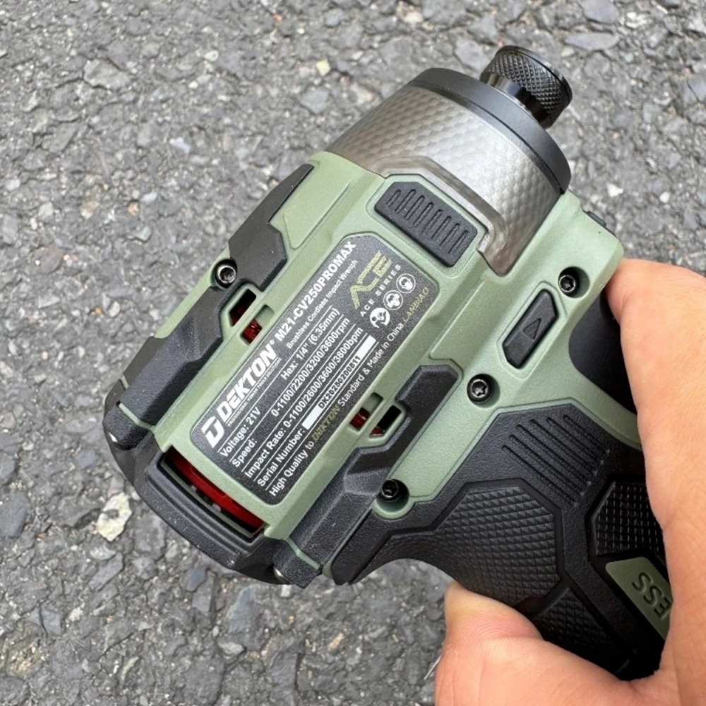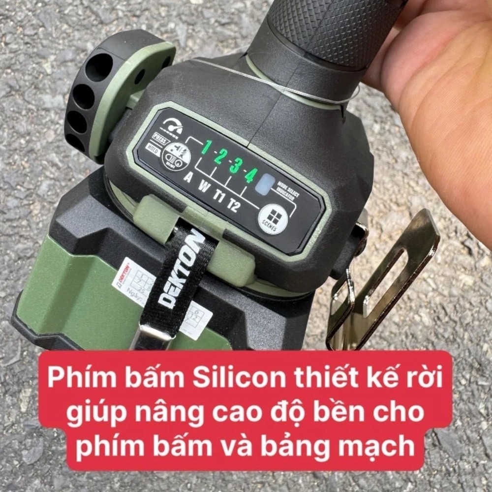 - Điều tốc vô cấp siêu mượt: Công tắc (cò máy) được tinh chỉnh để kiểm soát dải tốc độ cực thấp ở 2 cấp độ đầu tiên. Tính năng này đặc biệt quan trọng khi mồi vít vào vật liệu mềm hoặc các chi tiết yêu cầu độ thẩm mỹ cao, tránh làm hỏng bề mặt do quá lực.