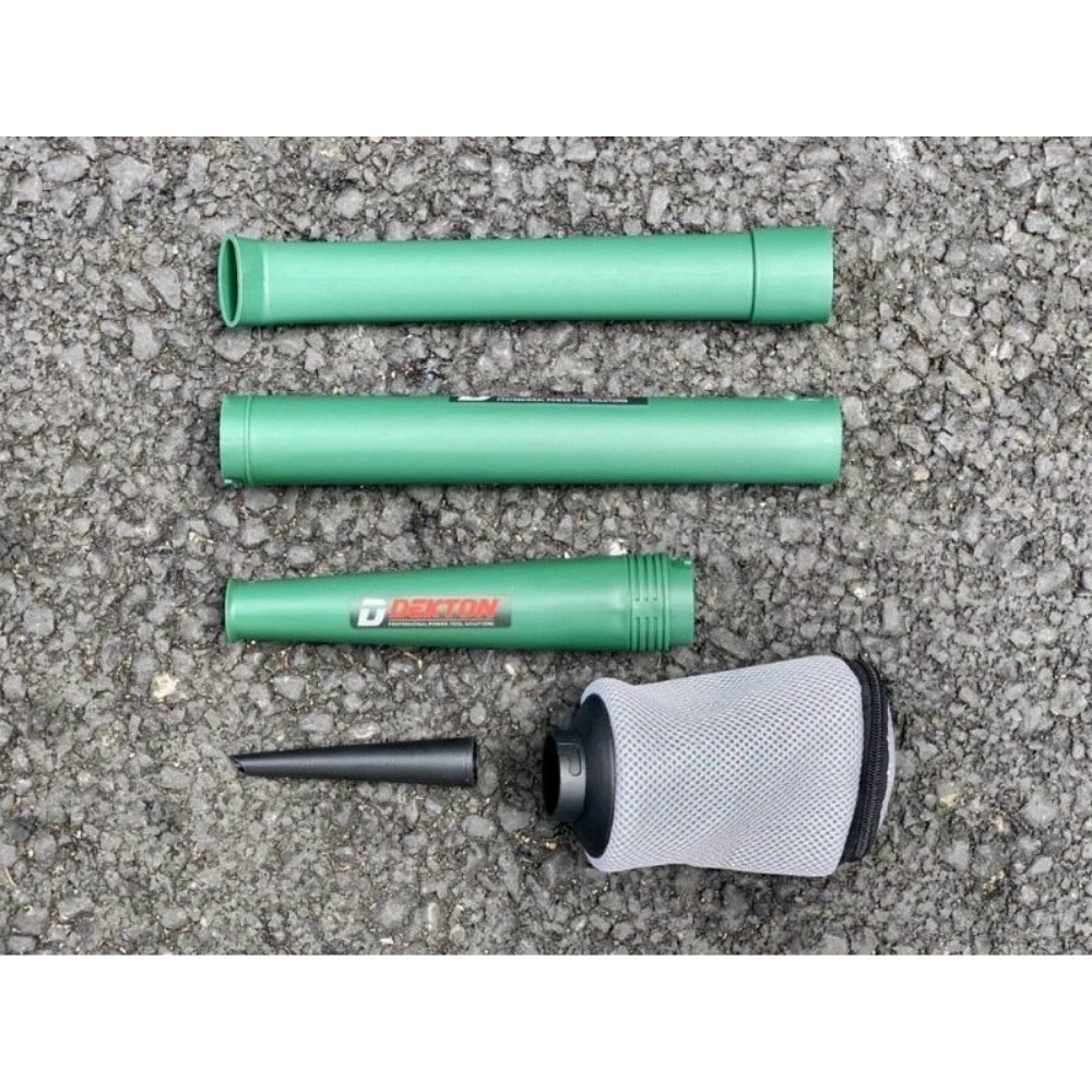- Ống thổi dài giúp người dùng không phải cúi lưng khi thổi lá dưới đất. Việc chia làm 2 khúc (mỗi khúc 30cm) cho phép thu gọn máy để cất vào hộp hoặc mang theo trong túi đồ nghề dễ dàng hơn các dòng ống liền.