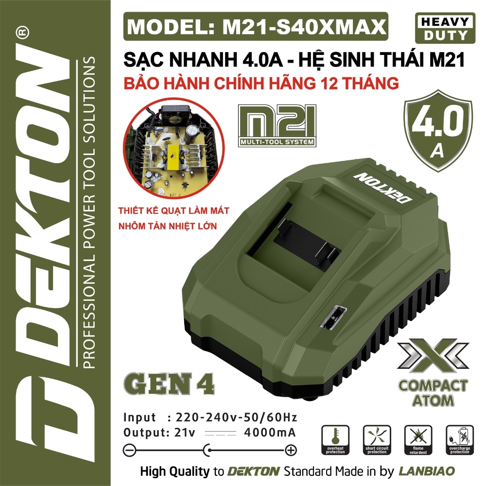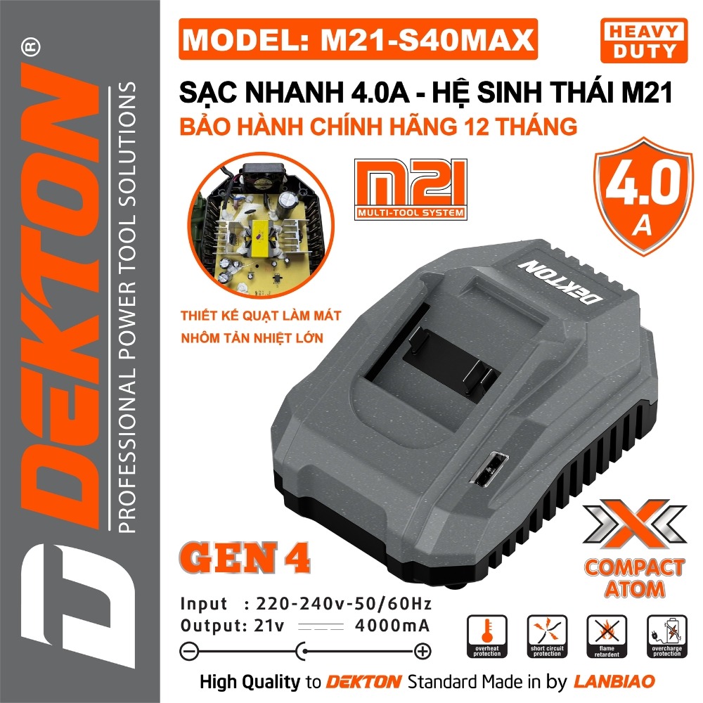 Sạc pin 21V 4.0A Dekton M21-S40MAX & M21-S40XMAX